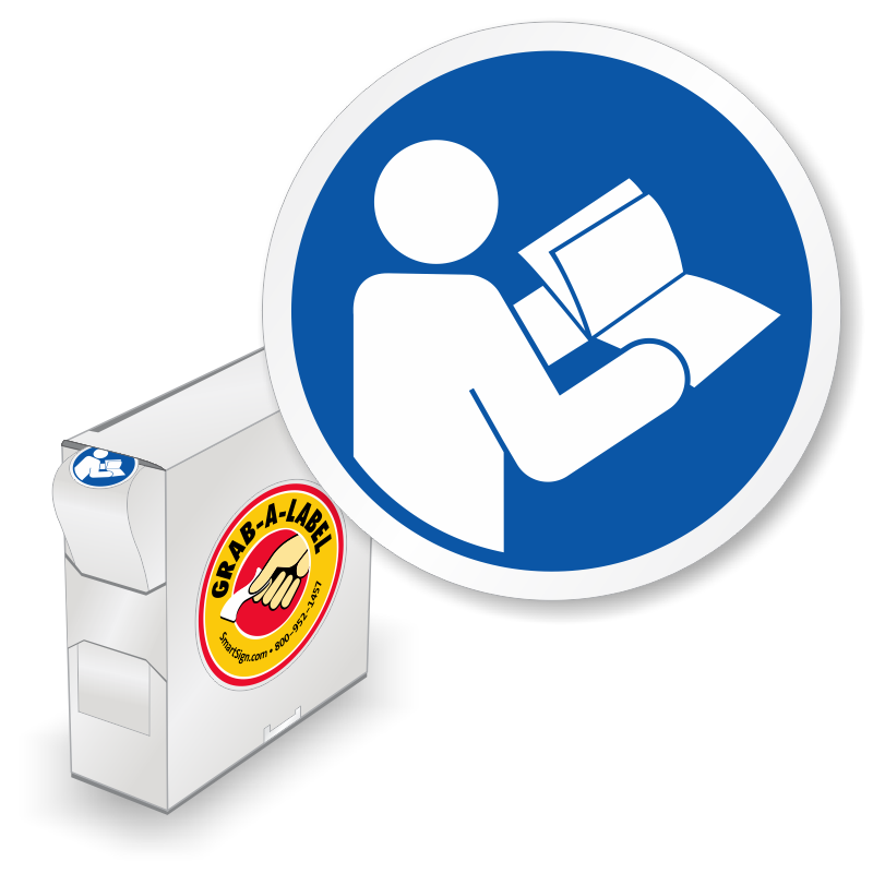 ISO 3864 Safety Labels are a clear, understandable way to communicate your safety message. These Internationally recognized ISO M002 - Read Operator's Manual Symbol Labels are the definitive way to post a safety message without words - as defined by ANSI Z535.4 and ISO 3864-2. Available in Rolls of 250 with a convenient label dispenser. Extremely durable handy label dispenser box goes where you need it. Polyolefin is waterproof, tear resistant, grease resistant, and endures shifts or changes in temperature. The laminate protects against scuffs, acids, chemicals and oils.