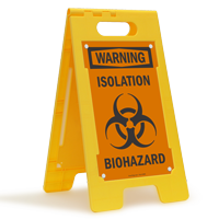 Standing floor signs get attention because they come right in the middle of way. FloorBoss Free-Standing Sign guarantees biohazardous area is isolated.