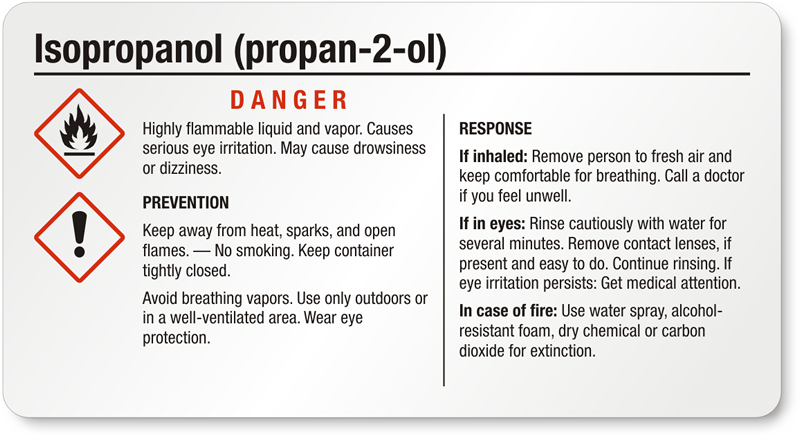 This GHS Chemical Label helps identify hazardous chemicals quickly and gives handling instructions. Isopropanol GHS Label can prevent a serious workplace accident.