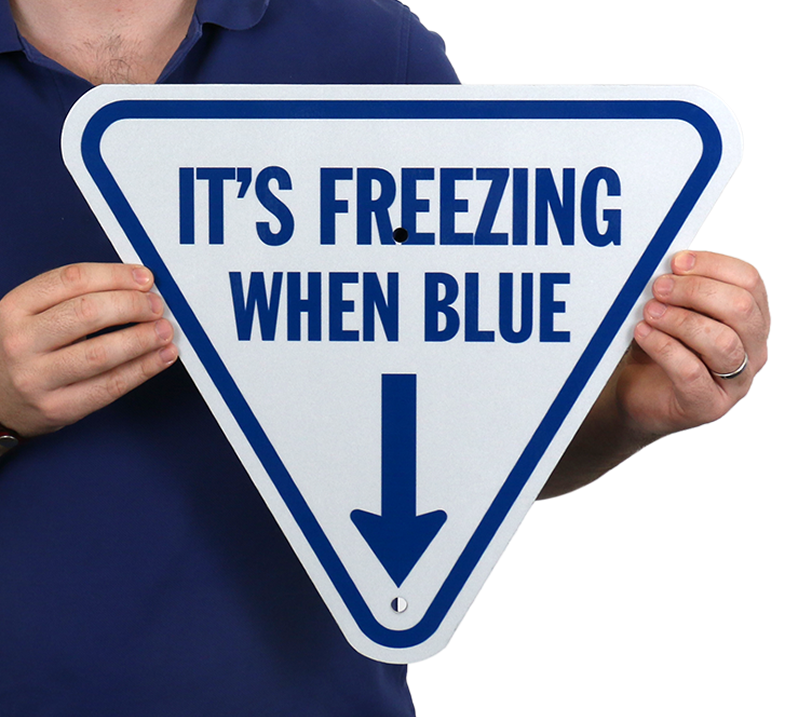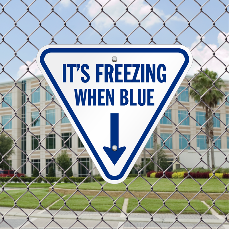 Ice Alert Sign: It's Freezing When Blue (Down Arrow) K2-0271 Learn More...