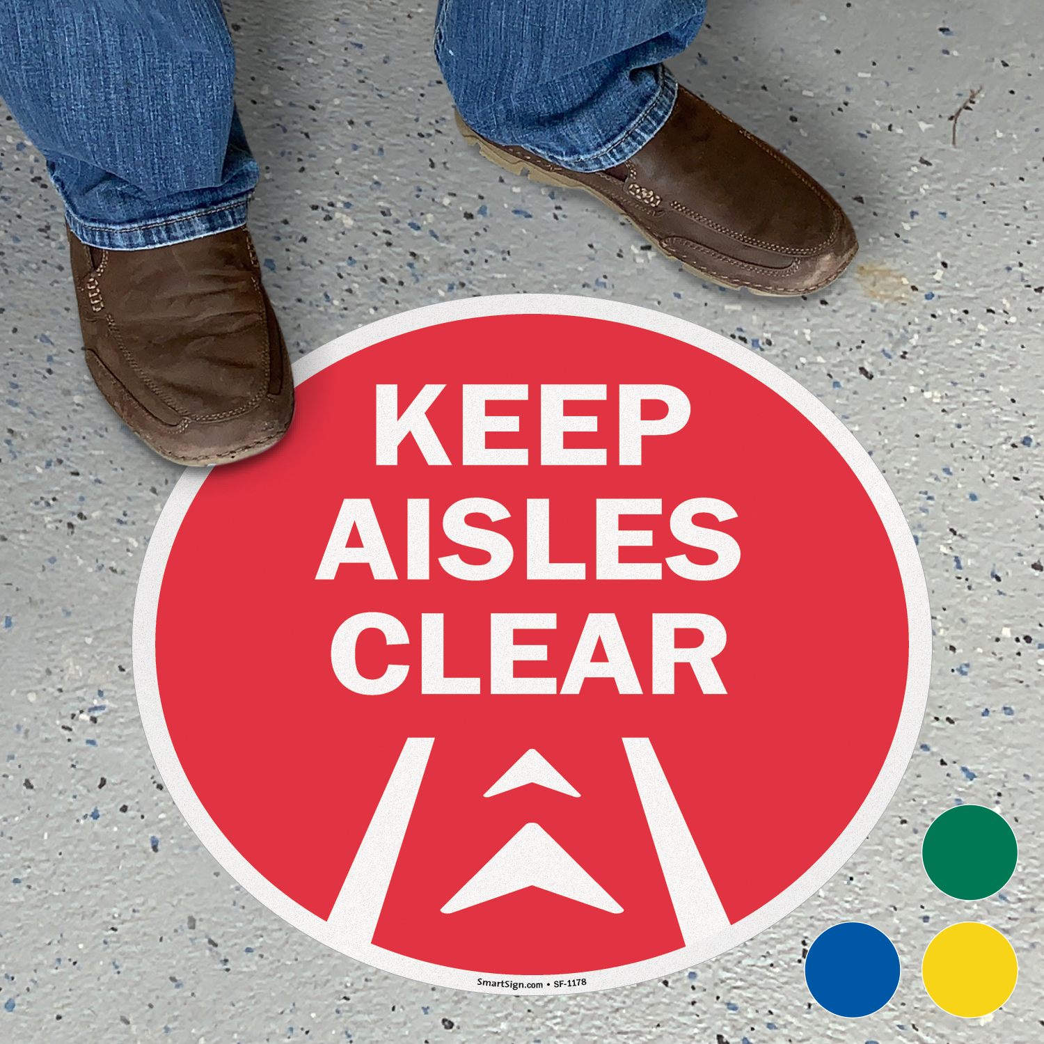 Keep aisles clear with a sign that's under everybody's nose! This slip-resistant, pebble-surface floor sign can easily adhere to your pedestrian area.