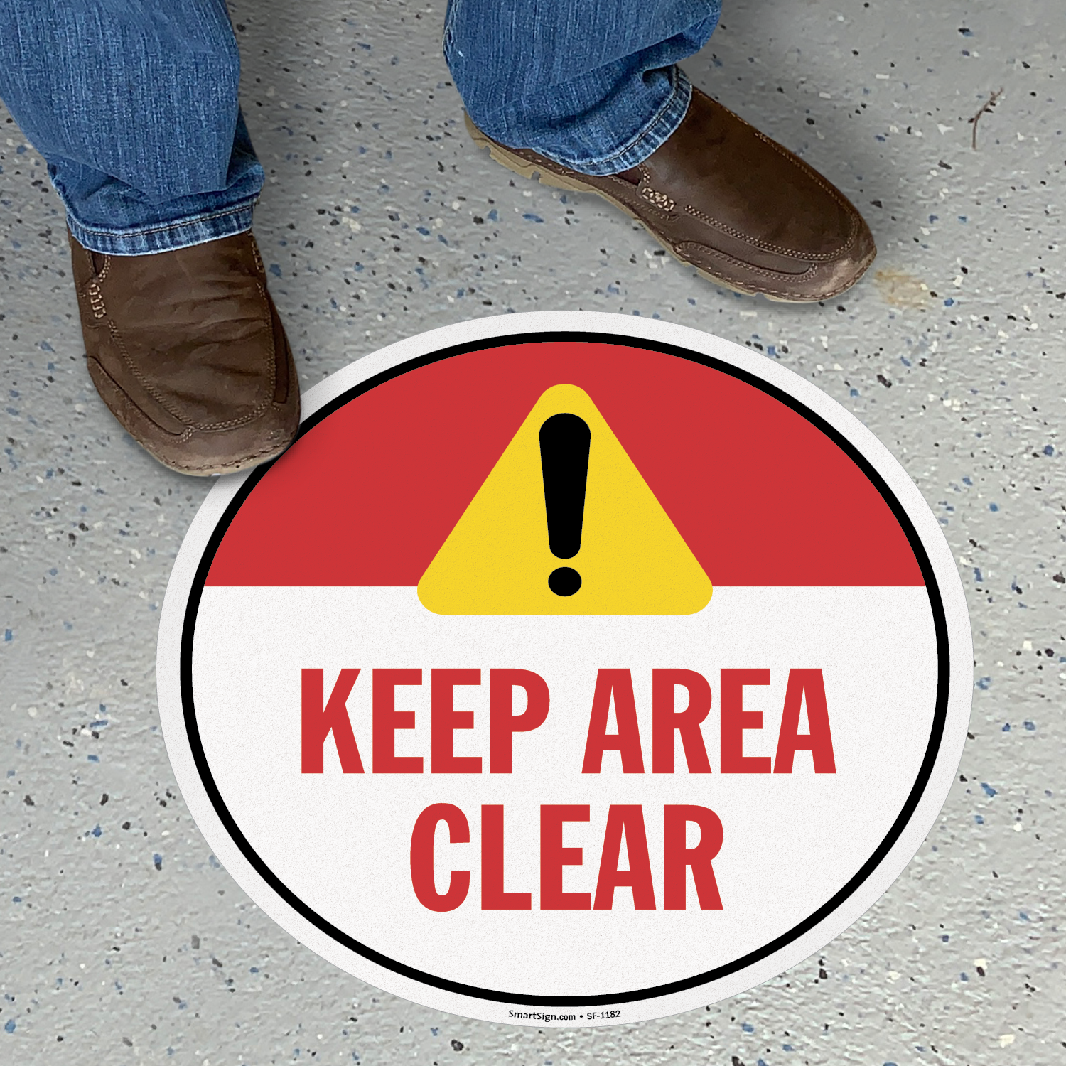 Underline the importance of safety with floor signs. This Keep Area Clear Sign prevents people from aggregating in an unsafe location.