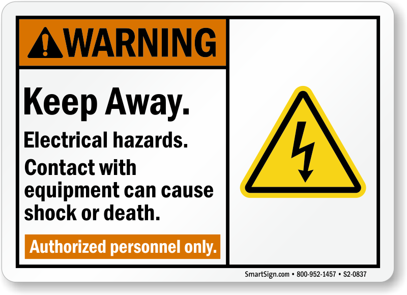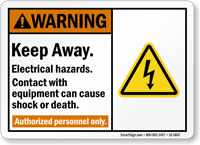ANSI Warning Sign: Keep Away - Electrical Hazards, Contact With Equipment Can Cause Shock Or Death. Authorized Personnel Only S2-0837