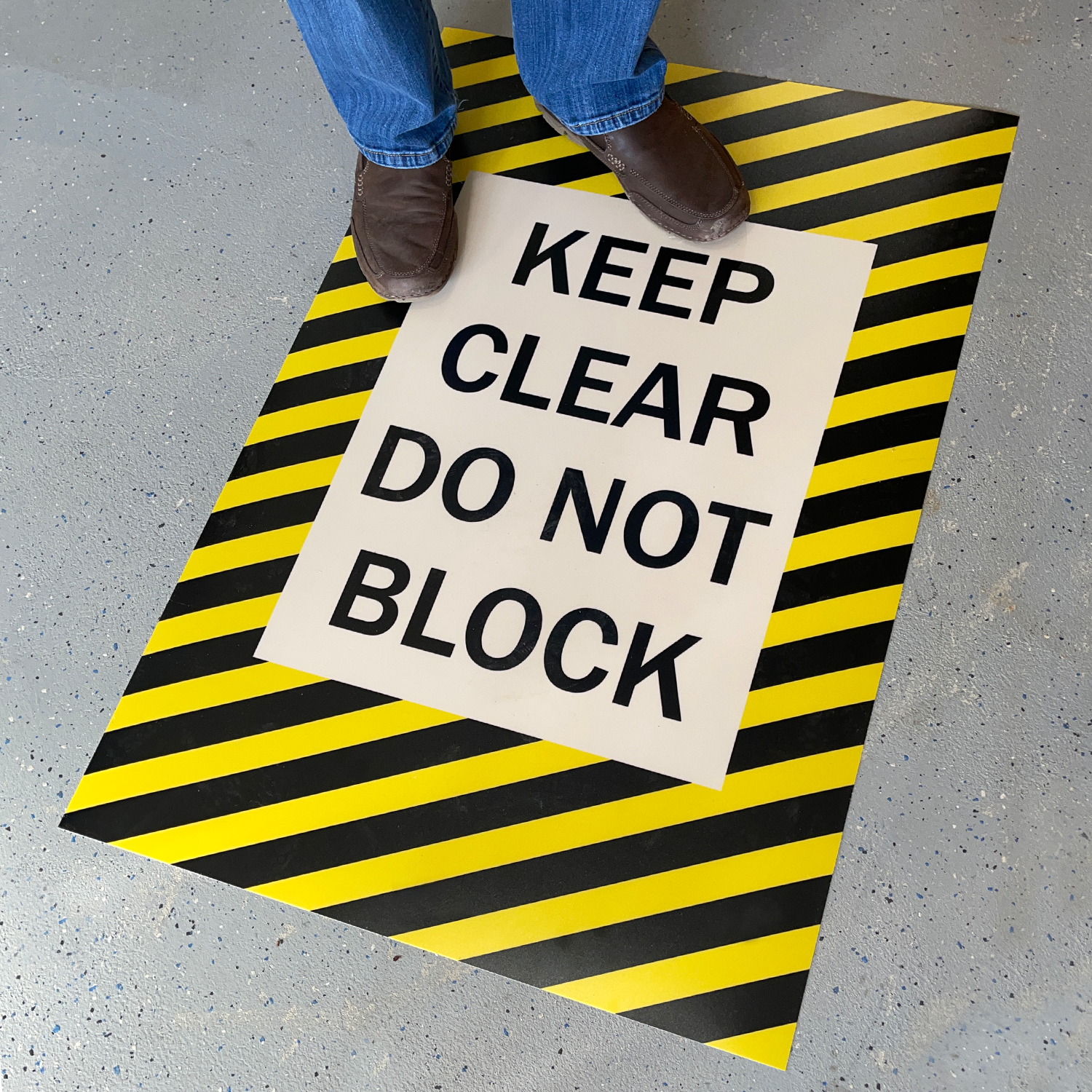 Durable and easy-to-apply, this Keep Clear Do Not Block Floor Sign is hard to miss.