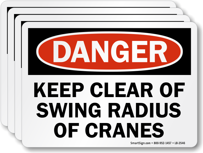 Remind workers to keep clear of swing radius of cranes and reduce liabilities by posting this high visibility OSHA Danger label. OSHA compliant design guarantees compliance. Made of premium quality materials, product lasts for several years, even in tough industrial settings.