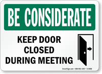 A Be Considerate sign serves as an effective reminder and makes your staff more responsible. Post this message so that people keep the door closed during meetings.