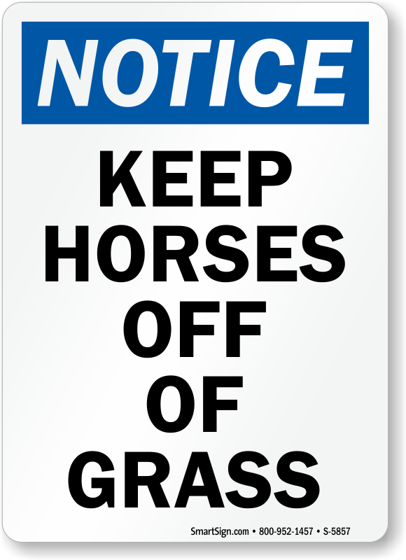 Ensure that incessant animal stomping does not kill your lawn. Instruct all owners to keep their horses off of grass by posting this bold OSHA Notice Sign.