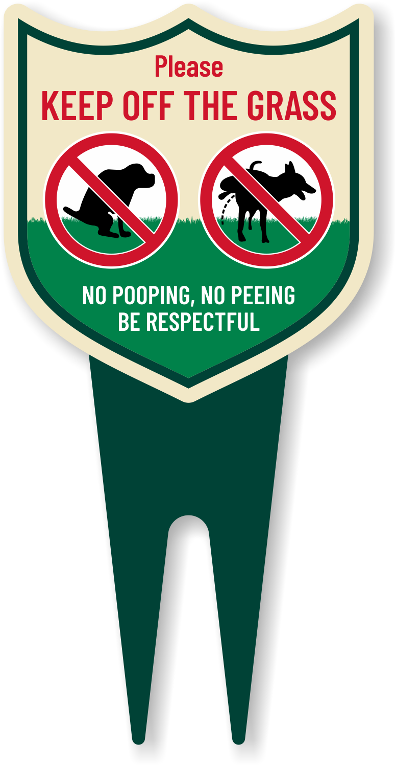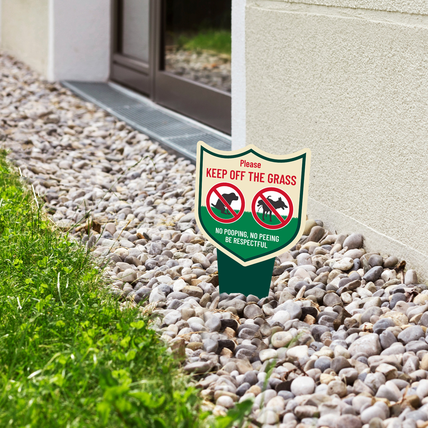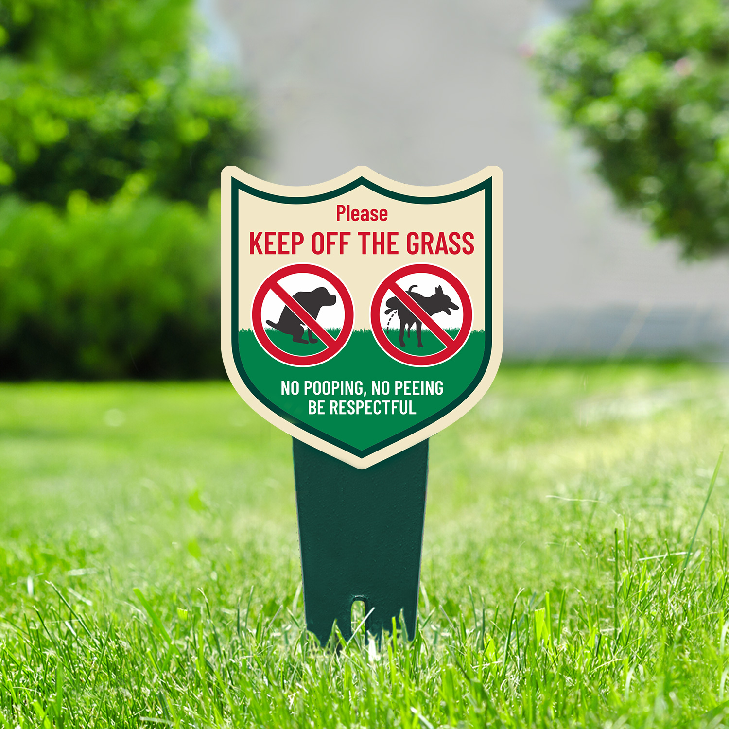 Shield Shape Yard Stake Sign: Please Keep Off The Grass - No Pooping, No Peeing Be Respectful K2-6932
