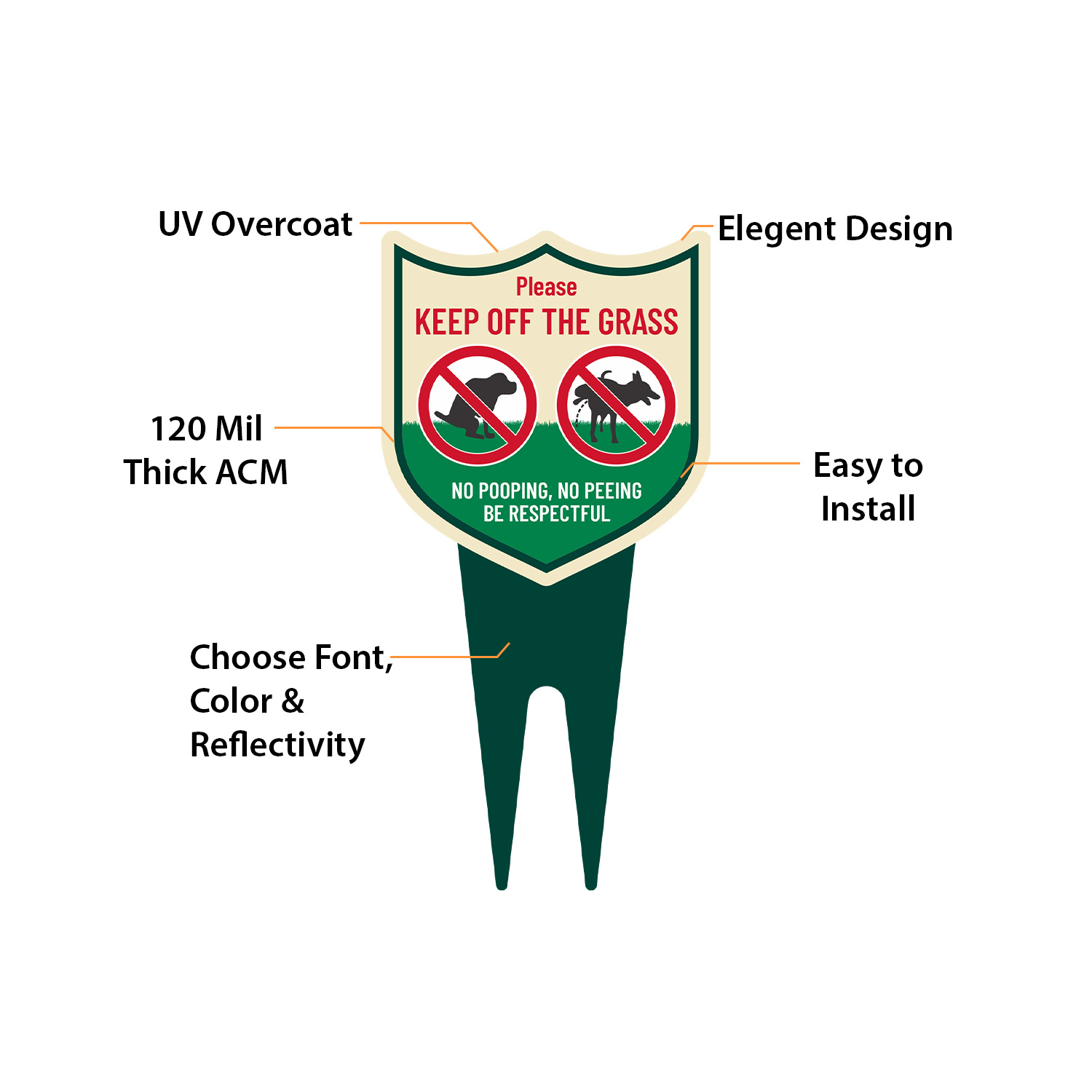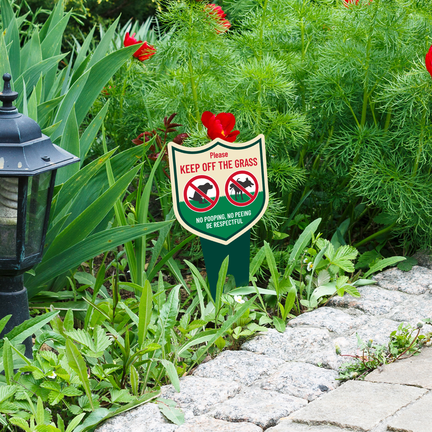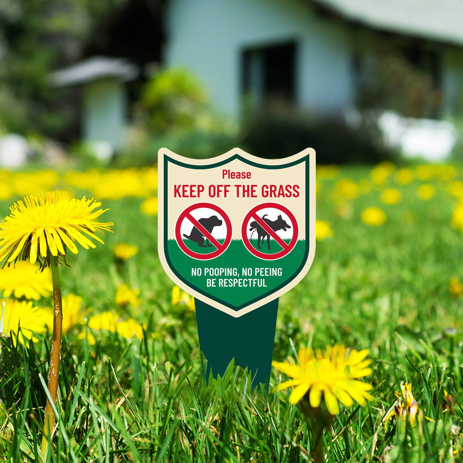 Shield Shape Yard Stake Sign: Please Keep Off The Grass - No Pooping, No Peeing Be Respectful K2-6932