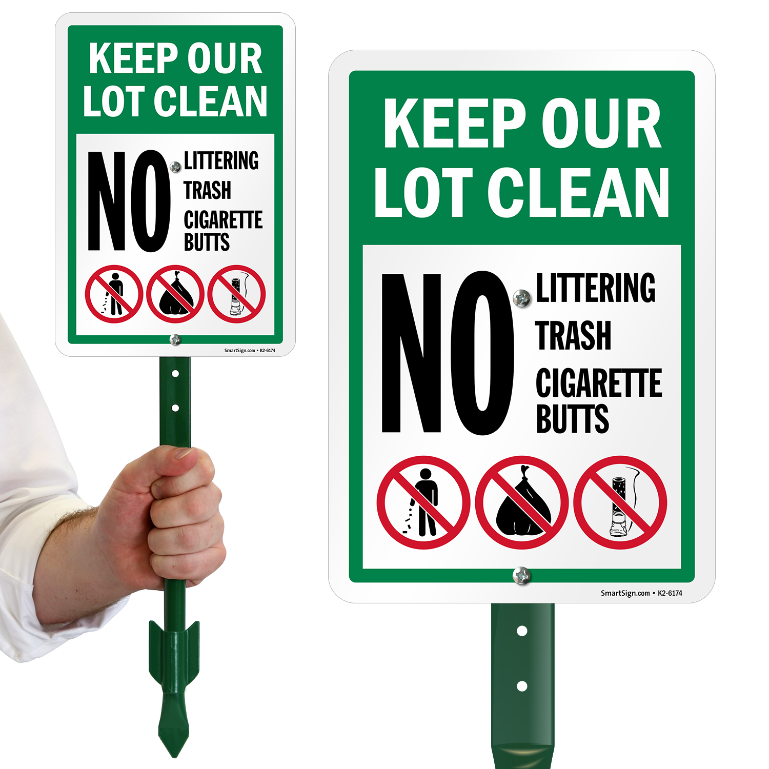 LawnPuppy® Sign & Stake Kit: Keep Our Lot Clean - No Littering, Trash, Cigarette Butts K2-6174