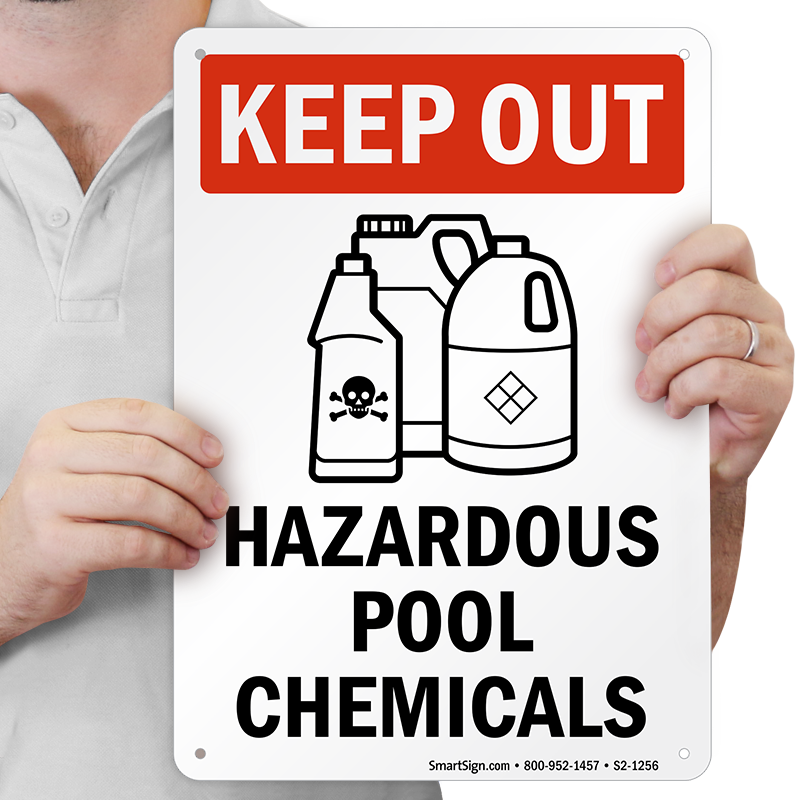 Mark the storage area used for hazardous pool chemicals at your facility. This sign helps you to inform pool users to keep away from the specific area.