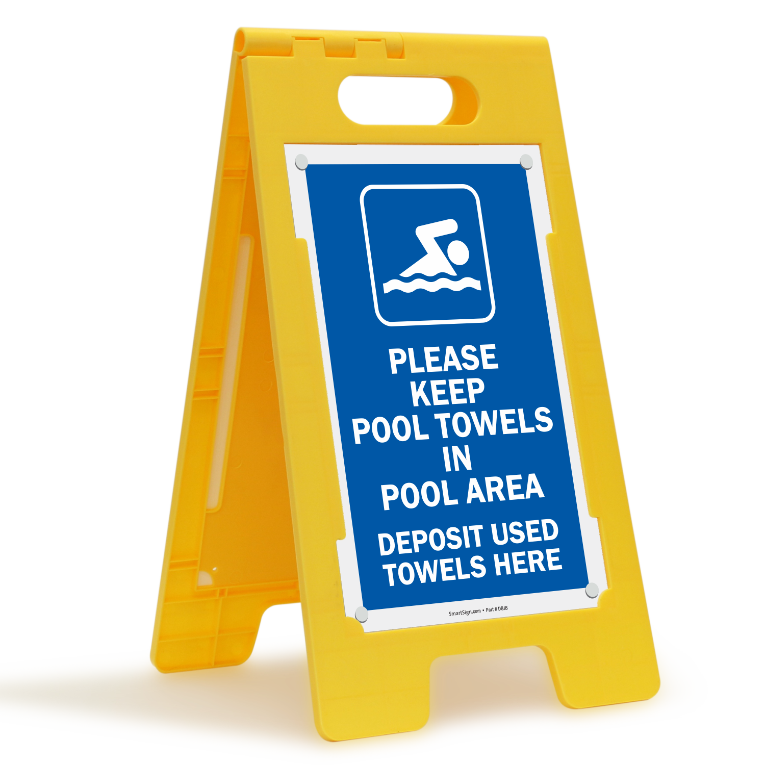 This Floor Standing Sign is a great way to keep the pool area clean and notify pool users about used towel deposit section.