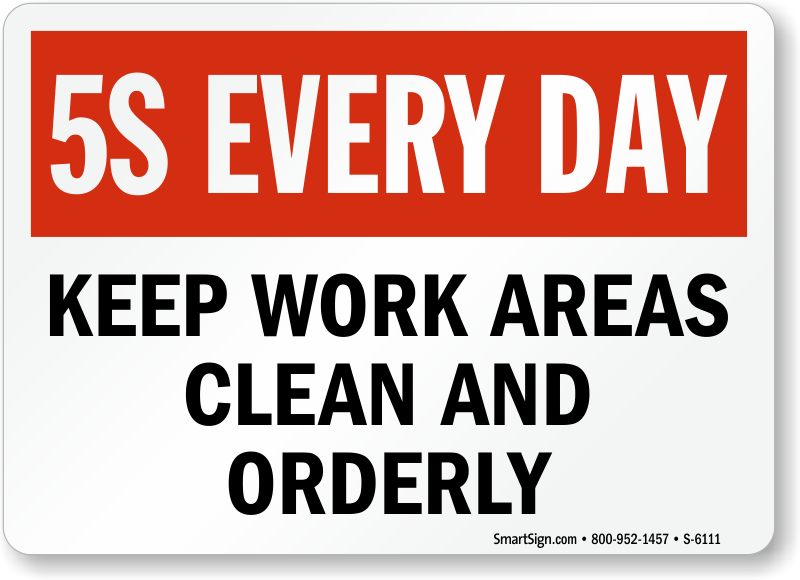 Keep your facility clean and orderly by installing reminder signs around your workplace to implement the 5S method.