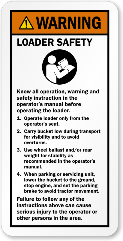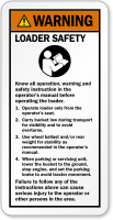 Operating Loader Instructions Warning Label: Loader Safety - Know All Operation, Warning And Safety Instruction In The Operator's Manual (with Graphic) LB-2228
