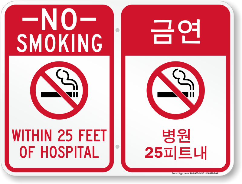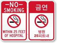 Bilingual Smoking Prohibited Sign: No Smoking - Within 25 Feet Of Hospital with Symbol (Korean + English) K-0921-B-KR Learn More...