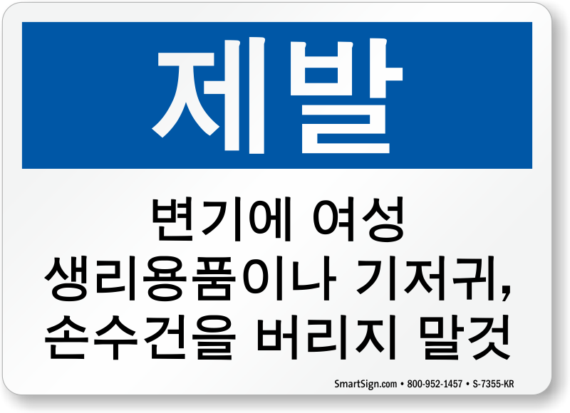 Make sure that whoever uses restroom maintains hygiene. Post this Korean Feminine Hygiene Products sign and ask your female employees and visitors to not deposit feminine products that cannot be flushed.