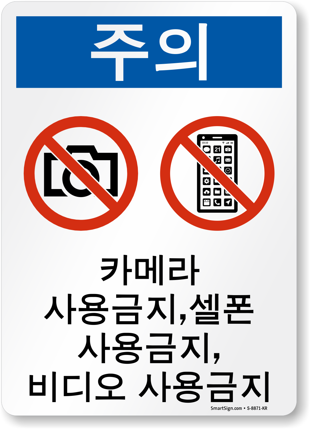 Send a clear message to your Korean speaking workers that cameras, cell phones and video are not allowed on the premises. Deploy this Korean OSHA Notice sign and prohibit the use.