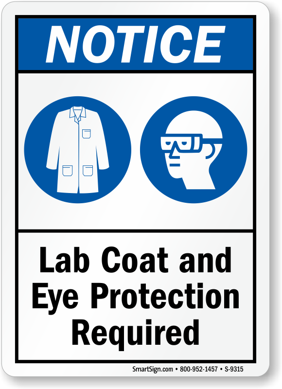 Make sure all employees wear their fancy lab coats and goggles with this blue and black notice sign.