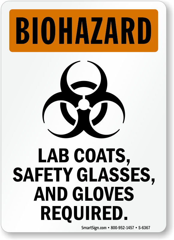 Protect workers against biohazards by advising them to wear lab coats, safety glasses, and gloves.