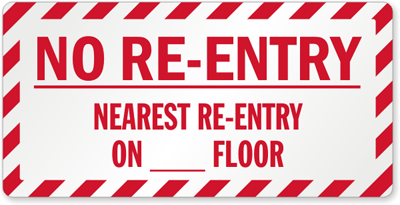 Clearly communicate safety with our No Re-Entry Sprinkler Label. It directs individuals to the nearest re-entry point, ensuring compliance and safety in emergencies. Durable and easy to apply for any facility.