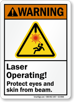 ANSI Warning Sign: Laser Operating! Protect Eyes And Skin From Beam (With Graphic) S2-0566