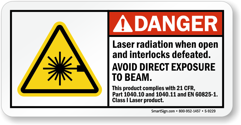 ANSI Danger Sign: Laser Radiation When Open And Interlocks Defeated. Avoid Direct Exposure To Beam (With Graphic) S-9229