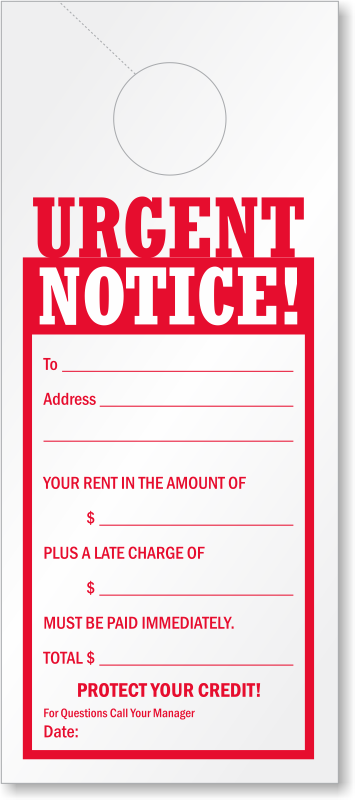 Late Rent Payment Reminder Door Hanger: Urgent Notice - Your Rent Plus Late Charge Must Be Paid Immediately TG-0989 Learn More...