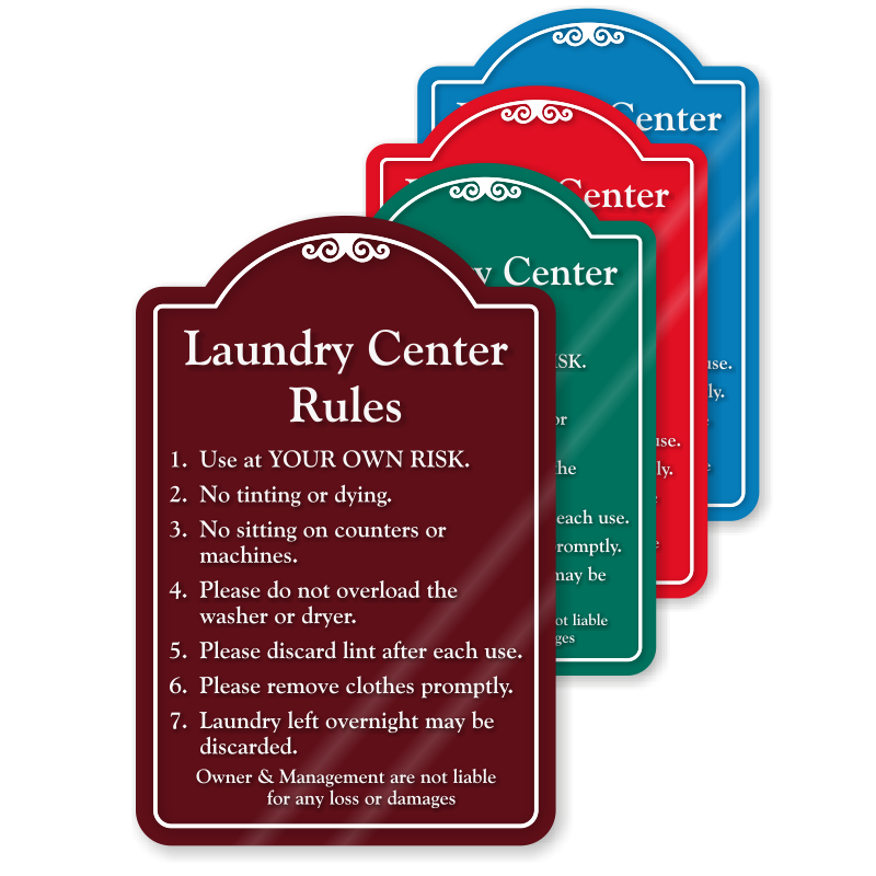 ShowCaseâ„¢ Decorative Sign: Laundry Center Rules - Owner & Management Are Not Liable For Any Loss Or Damages SE-7056