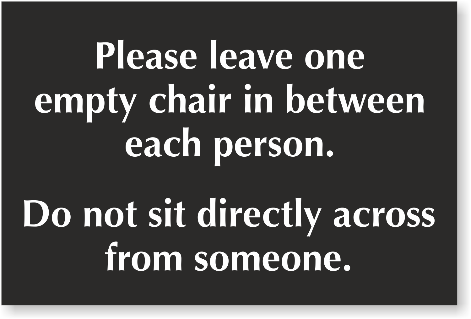 Select-a-Color Engraved Sign: Please Leave One Empty Chair In Between Each Person, Do Not Sit Directly Across From Someone SE-7417