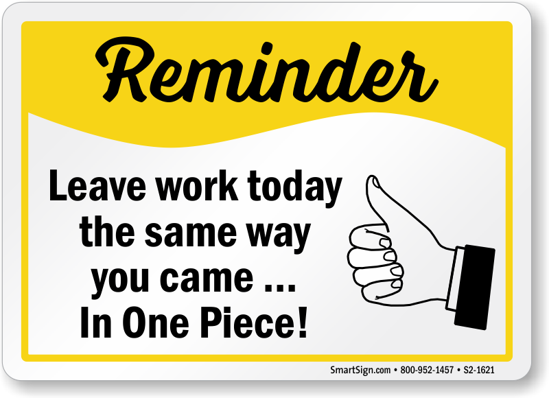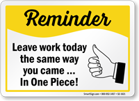 Safety Reminder Sign: Leave Work Today The Same Way You Came - In One Piece! S2-1621