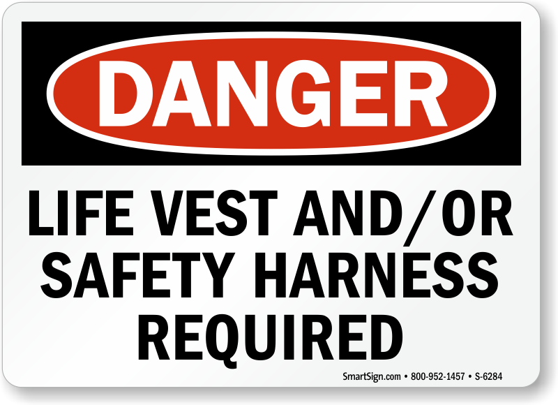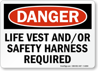 Use an OSHA compliant, bold 'Life Vest And/Or Safety Harness Required' Sign and safeguard your workers from fall hazards.