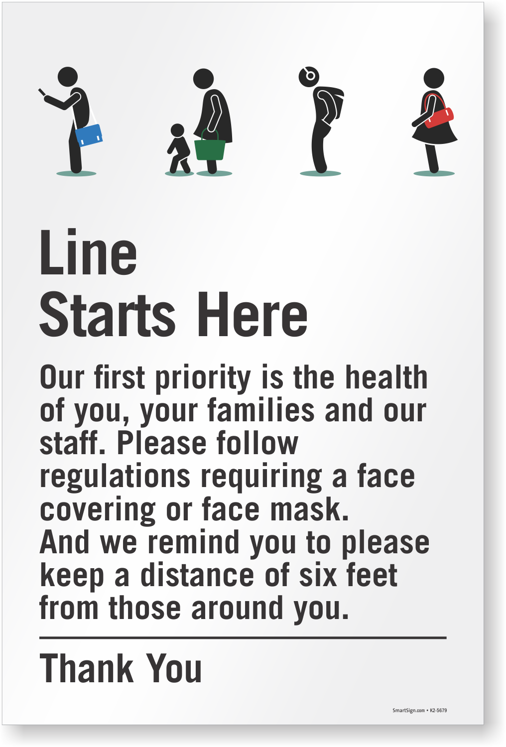 - Use this sign to show the beginning of the line as well as ensuring people maintain proper social distance.