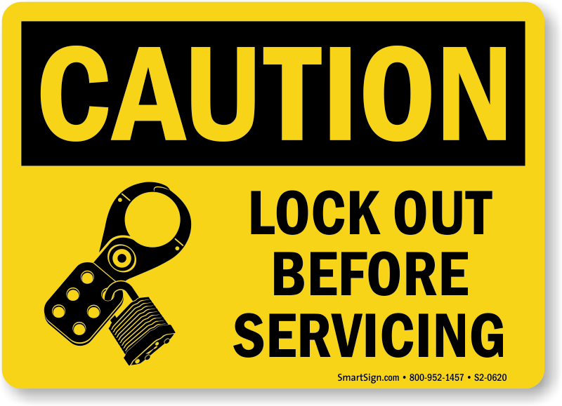 OSHA Caution Sign: Lock Out Before Servicing (With Graphic)