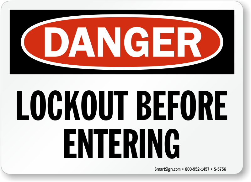 Inform everyone that your facility adheres to LOTO procedures. This OSHA Danger Sign clearly states that workers need to lockout before entering the particular area.