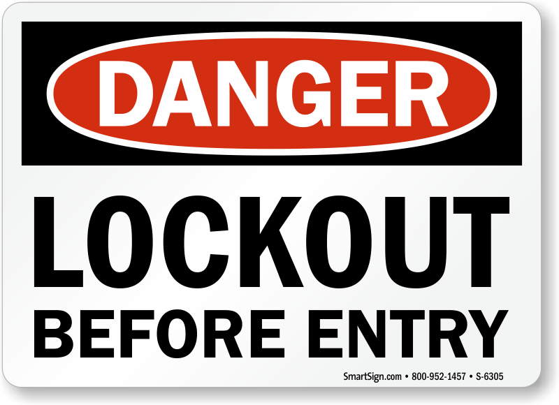 This OSHA Danger Sign reminds workers that lockout before entry is a must and ensures that your facility adheres to OSHA's LOTO procedure.