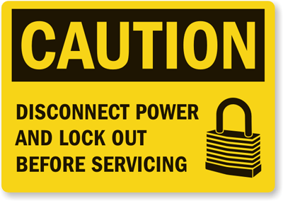 OSHA Caution Label: Disconnect Power And Lock Out Before Servicing L-0015-XV