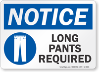 OSHA Notice Sign: Long Pants Required S2-2031