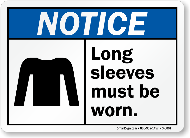 State your workplace policies clearly with this ANSI Notice sign. Use this message to communicate that long sleeve clothes must be worn by everyone in the area.