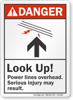ANSI Danger Sign: Look Up! Power Lines Overhead, Serious Injury May Result S2-2607