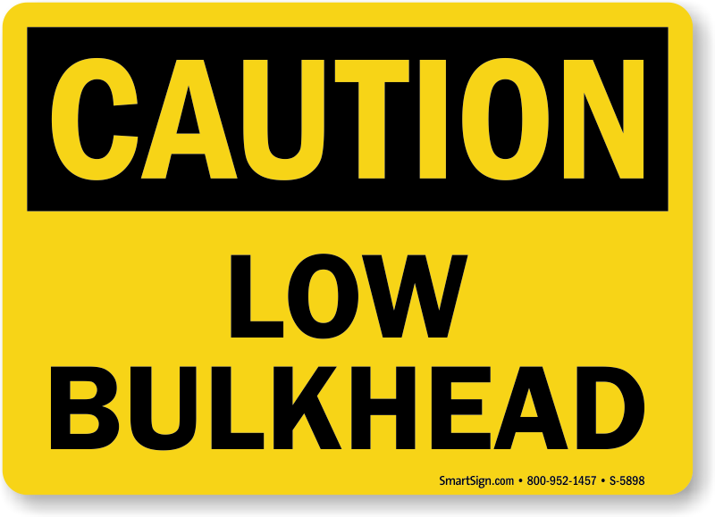 Post this OSHA Sign and notify people of low bulkhead to prevent head collisions.