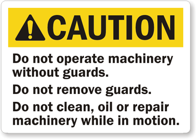Make sure that you machinery is guarded and that labels warn against this possible hazard.