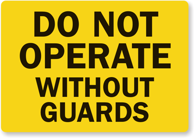 3.5in. x 5in. Laminated Vinyl Label: Do Not Operate Without Guards L-0209-XV