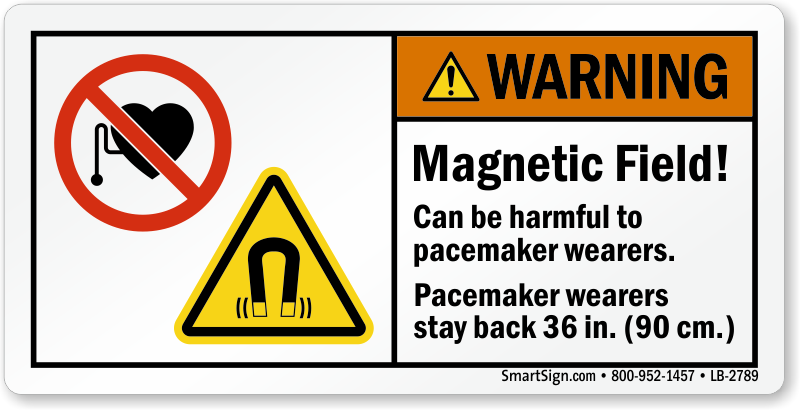 ANSI Warning Safety Label: Magnetic Field! Can Be Harmful To Pacemaker Wearers Pacemaker Wearers Stay Back 36 in (90 Cm) (With 2 Graphics) LB-2789