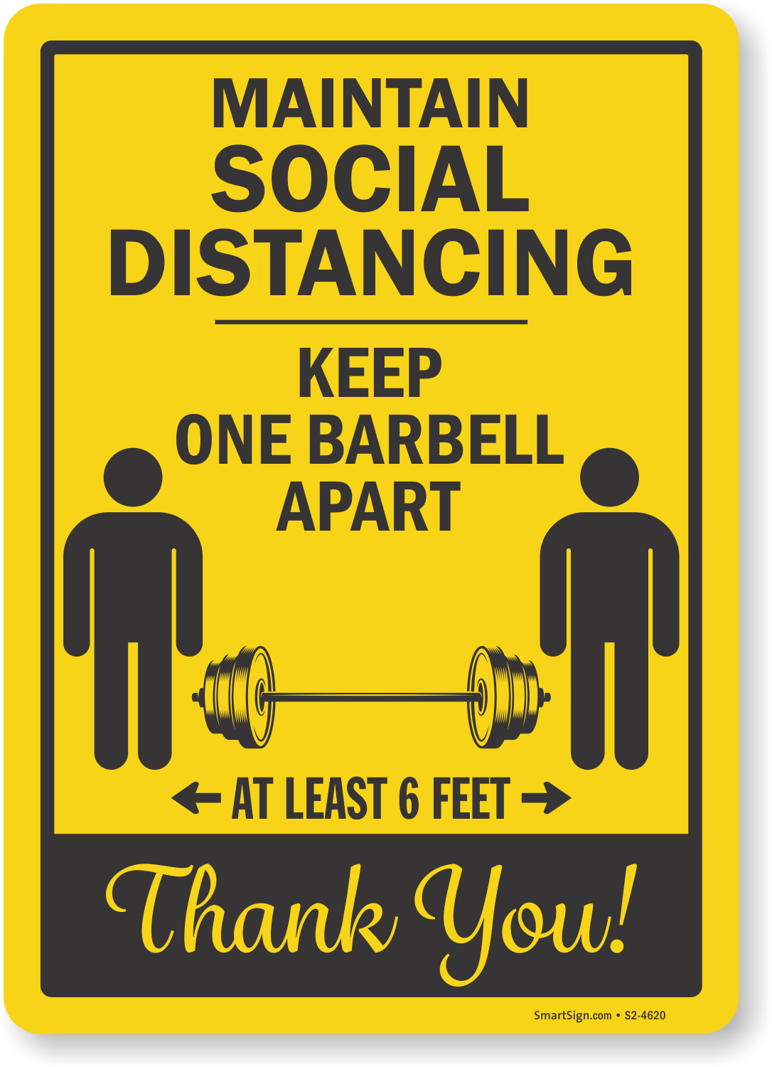 Explain social distancing to fitness enthusiasts in their language. Post our social distancing sign designed specifically for gyms and fitness centers.