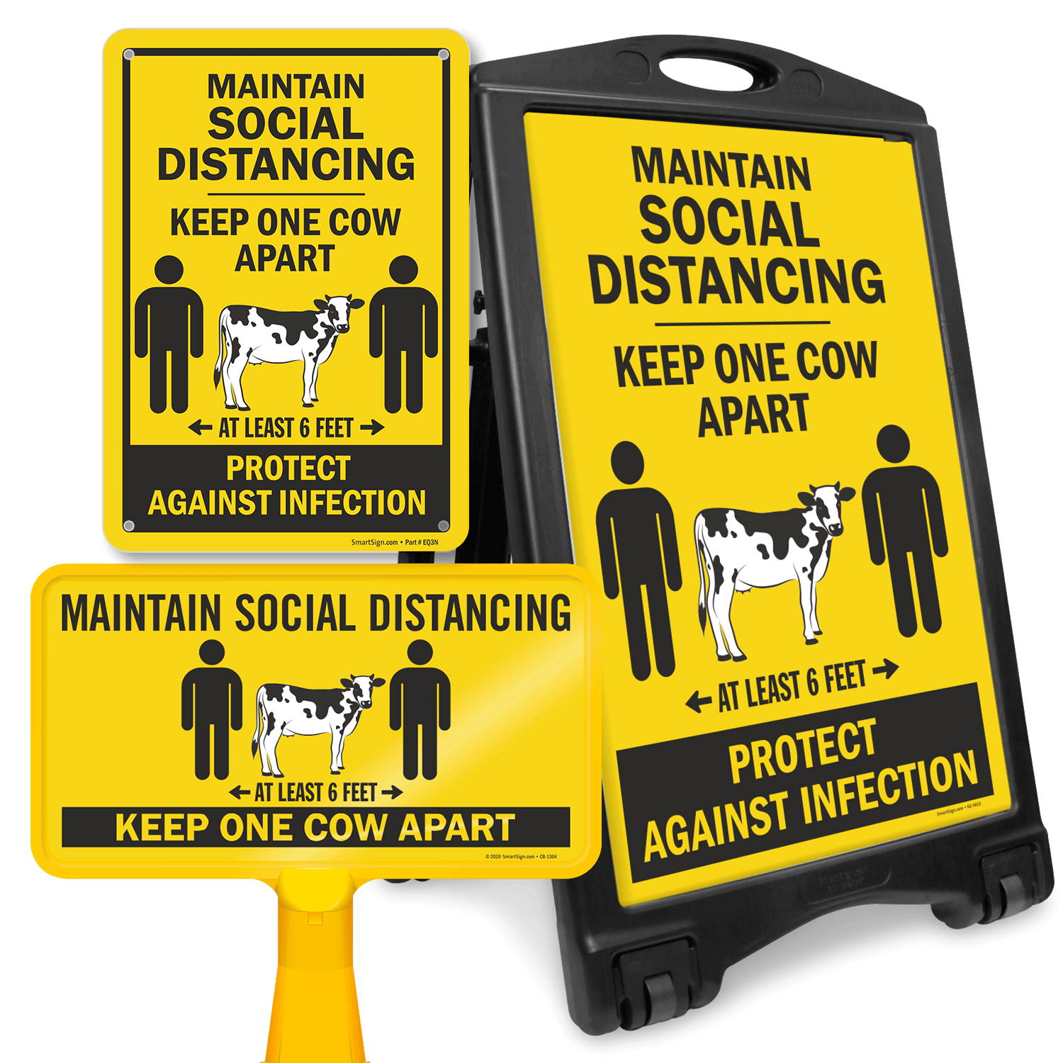 Social Distancing Sign: Maintain Social Distancing - Keep One Cow Apart, At Least 6 Feet. Protect Against Infection S2-4429 Learn More...