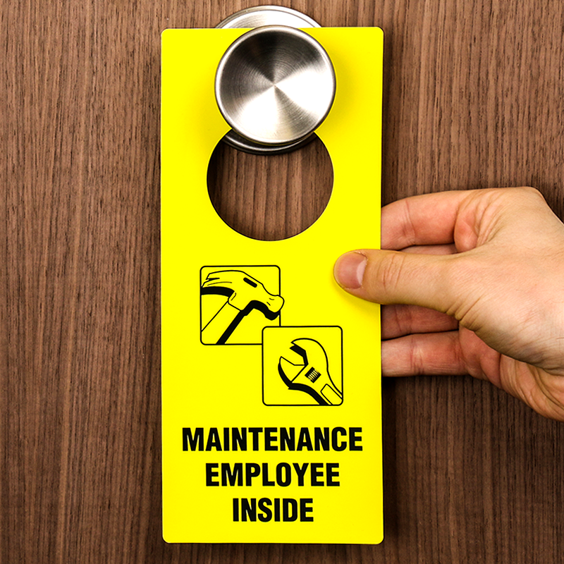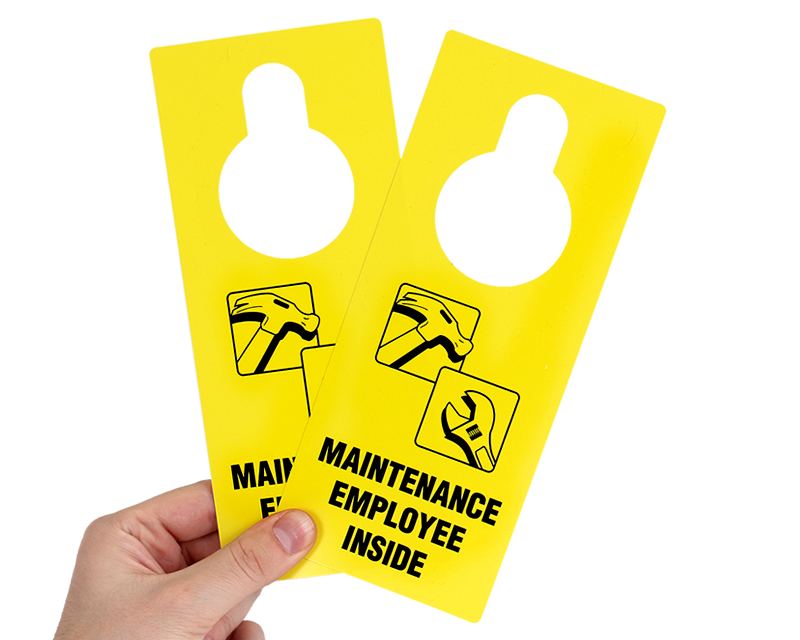 With the graphics of hammer and wrench, this door hanger will tell residents of the presence of maintenance staff in the house.