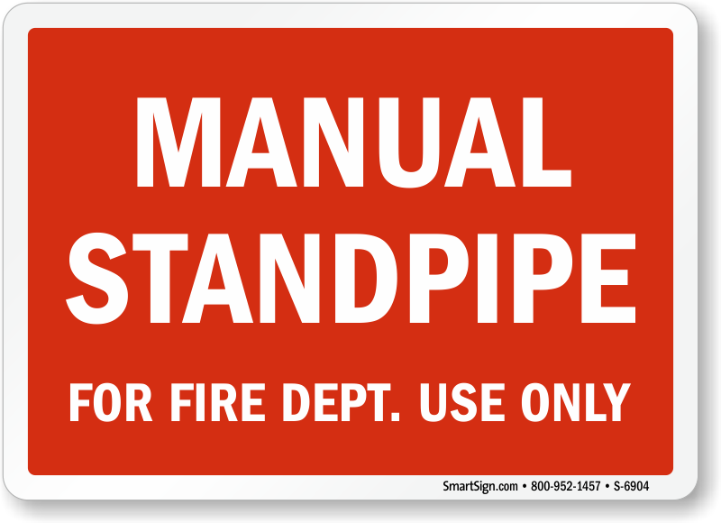 Make the manual standpipe in your building recognizable. Place this sign and state that it is exclusively for the use of fire department.