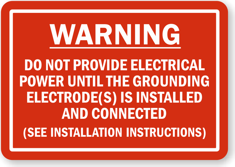 Manufactured Home Service Equipment Warning Sign: Do Not Provide Electrical Power Until The Grounding Electrode(s) is Installed and Connected. S2-2977
