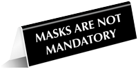 Engraved TableTop Tent Sign: Masks Are Not Mandatory SE-7556