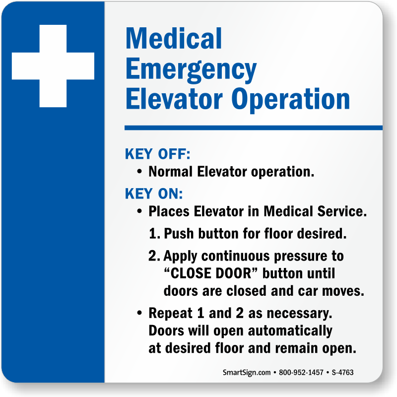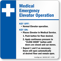 6in. x 6in. Medical Elevator Sign: Medical Emergency Elevator Operation With Cross Symbol